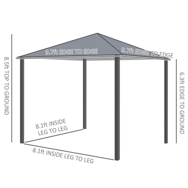 - – Overall Size: 9.7′ L x 9.7′ W