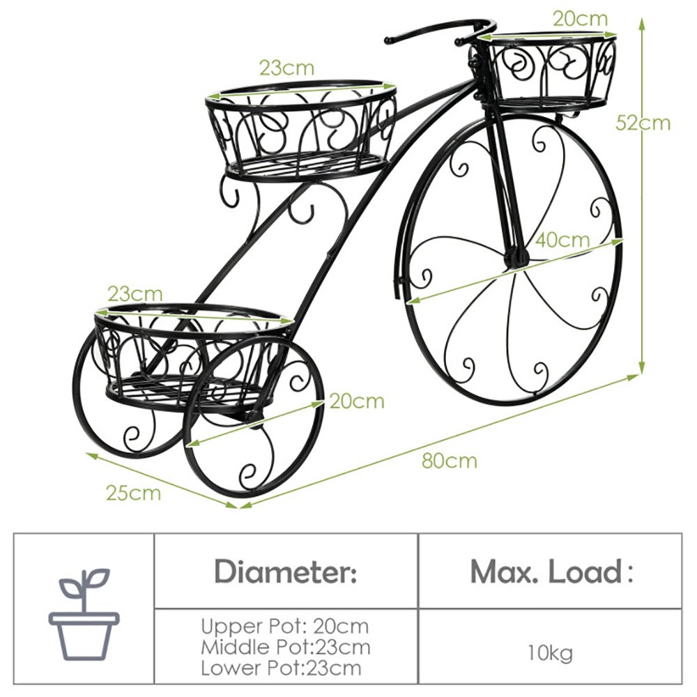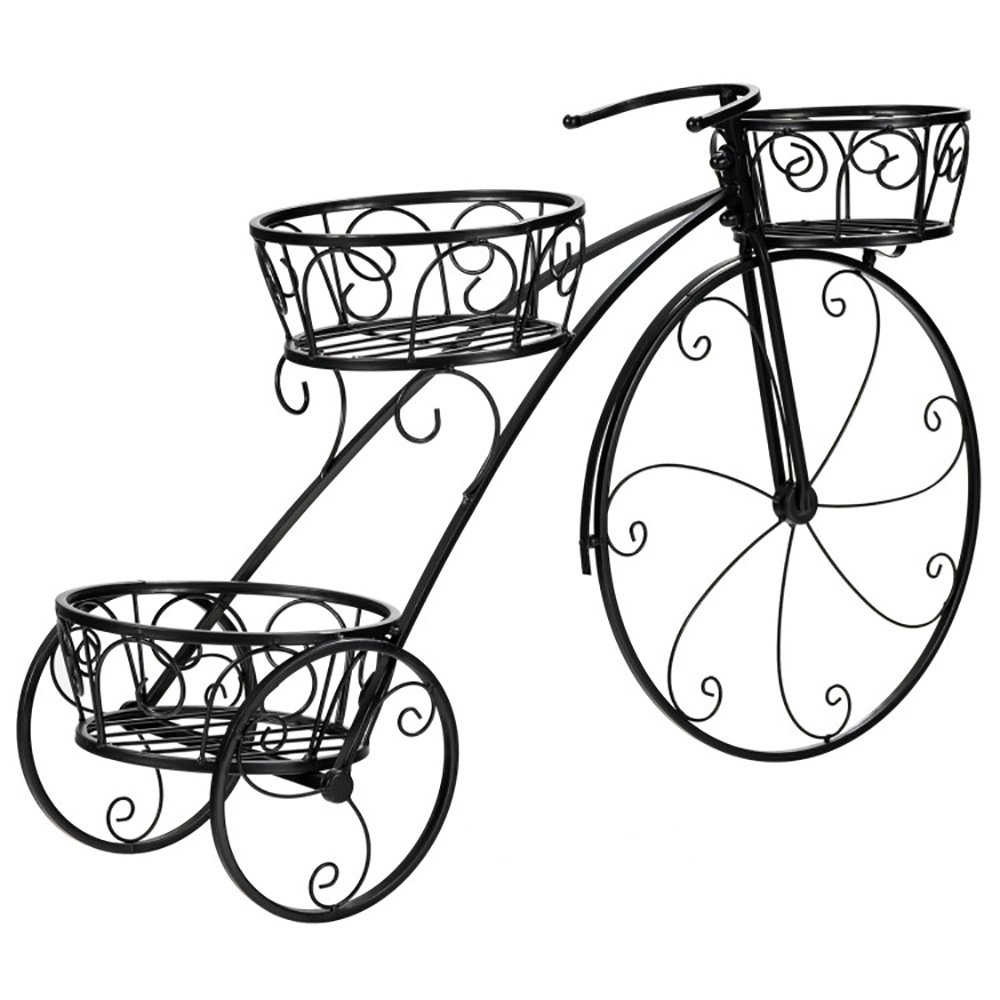 ● 3-Tier Tricycle Plant Stand: Wrought iron flower plant stand features 3 round shelves, which beautifully displays your ferns, succulents, tulips, narcissus and other lovely potted plants. The basket-style design prevents plants from falling accidentally and enhances the look of your garden or outdoor.