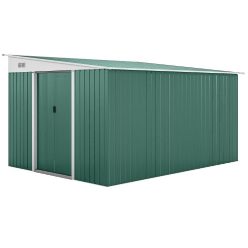 Outsunny Garden Metal Storage Shed Outdoor Metal Tool House With Double Sliding Doors And 2 Air Vents, 11.3×9.2ft, Green